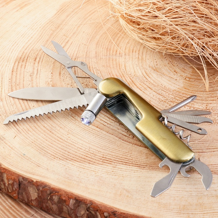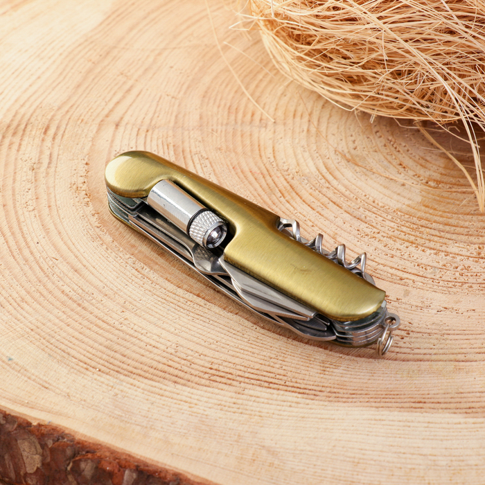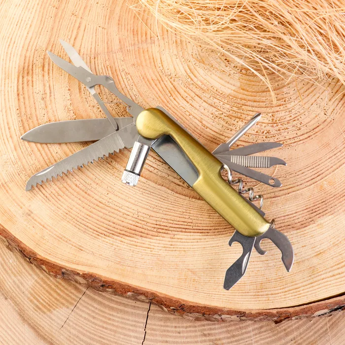 Нож многофункциональный 11в1, 15см, клинок 60/2мм, золотистый