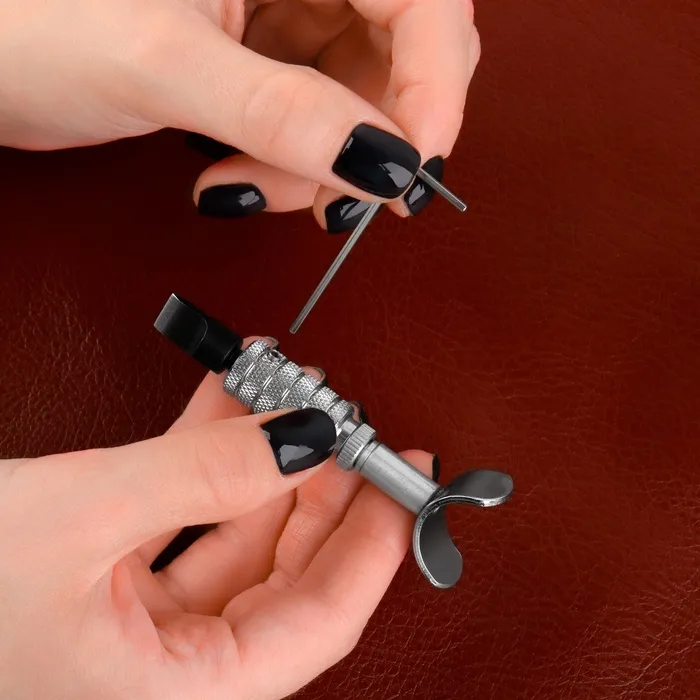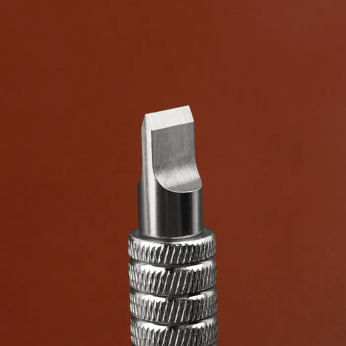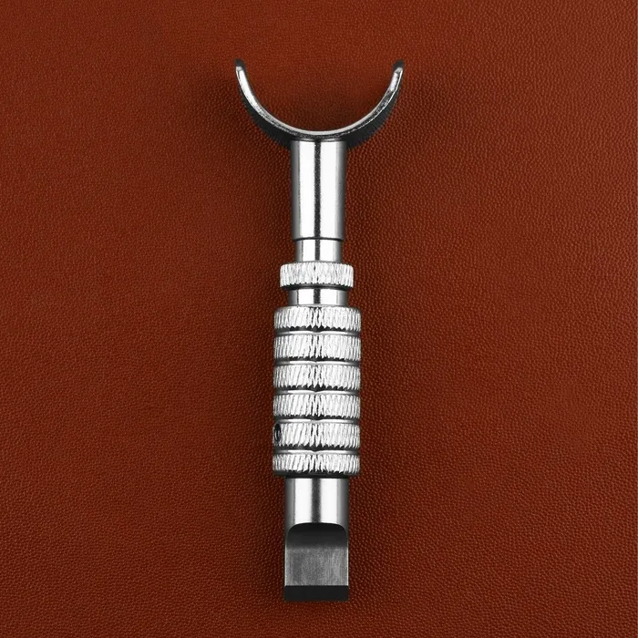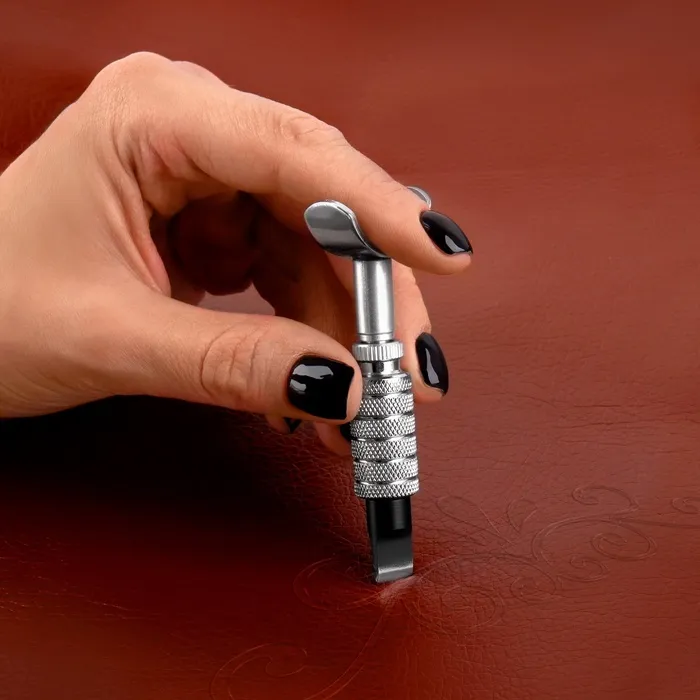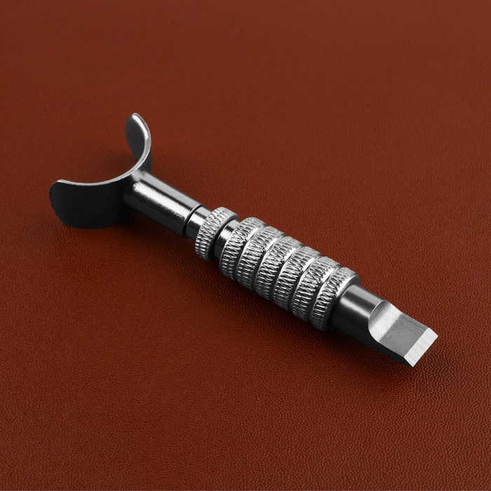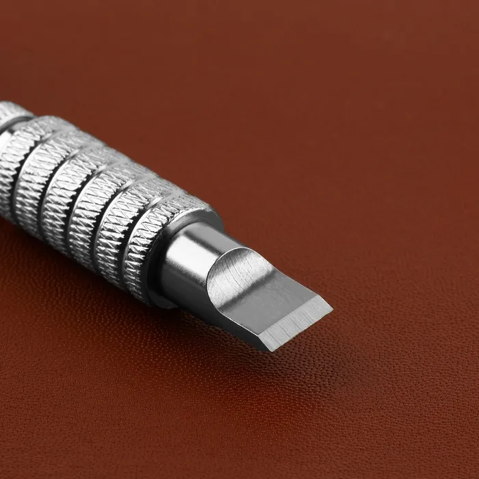 Поворотный нож предназначен для прорезывания различных линий. Он является основным инструментом кожевников, который используется практически во всех видах резки и тиснения. Этот инструмент обеспечивает точность, гибкость и удобство при работе, позволяя создавать различные узоры и декоративные элементы.