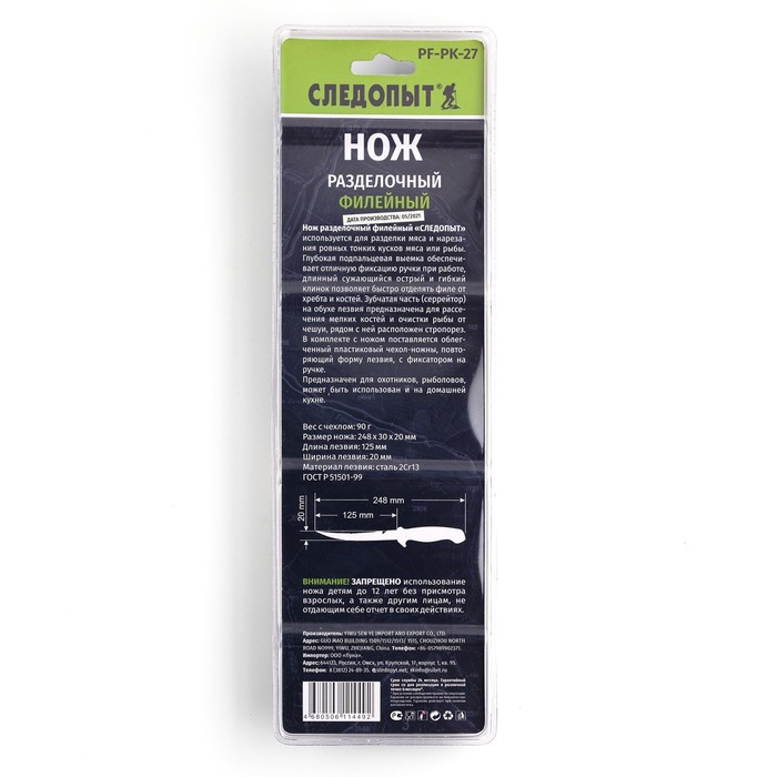Нож разделочный «СЛЕДОПЫТ», 15 см, филейный, с чехлом, прорезиненная ручка — Характеристики