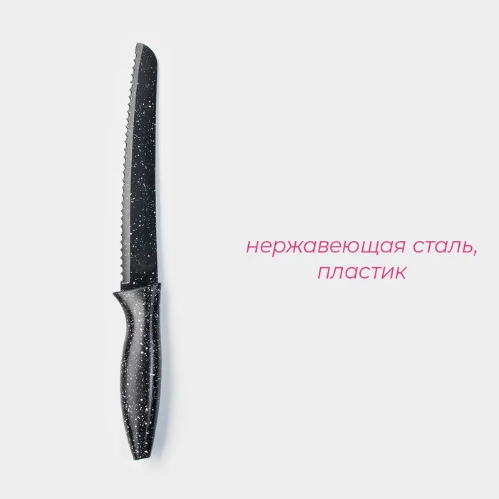 Нож с антиналипающим покрытием Доляна «Зефир», хлебный, лезвие 20 см, чёрный — Характеристики