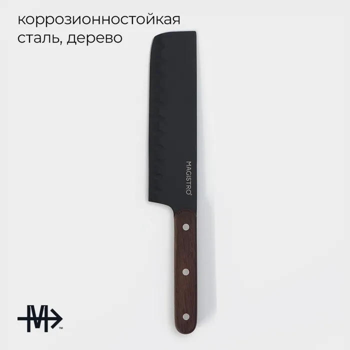 Нож Сантоку кухонный Magistro Dark wood, длина лезвия 17.8 см — Характеристики