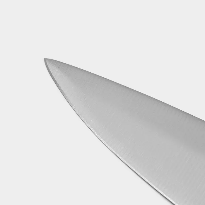 Лезвие ножа изготавливается из высококачественной стали, что обеспечивает его прочность и долговечность.Эргономичная ручка: ручка ножа изготовлена из нескользящего материала, который обеспечивает надежный захват и комфортное использование ножа даже при длительной работе.Универсальный размер: нож имеет оптимальный размер, что позволяет использовать его для выполнения различных задач на кухне, от нарезки небольших ингредиентов до разделки крупных кусков мяса.Острое лезвие: благодаря качественной заточке лезвия, нож легко справляется с нарезкой самых разных продуктов, сохраняя их текстуру и свежесть.Многофункциональность: нож универсальный может использоваться для нарезки, измельчения и разделки различных продуктов - от овощей и фруктов до мяса и рыбы.Легко ухаживать: нож легко моется и очищается от остатков продуктов, что позволяет поддерживать его в чистоте и порядке.