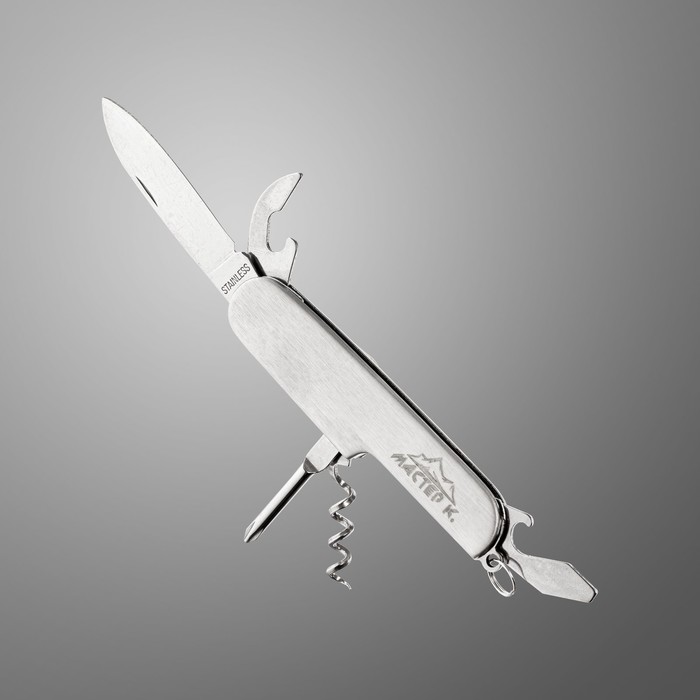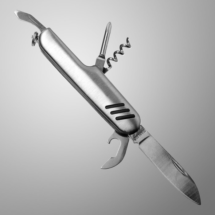 Нож швейцарский "Артек", 6в1, рукоять с насечками, хром