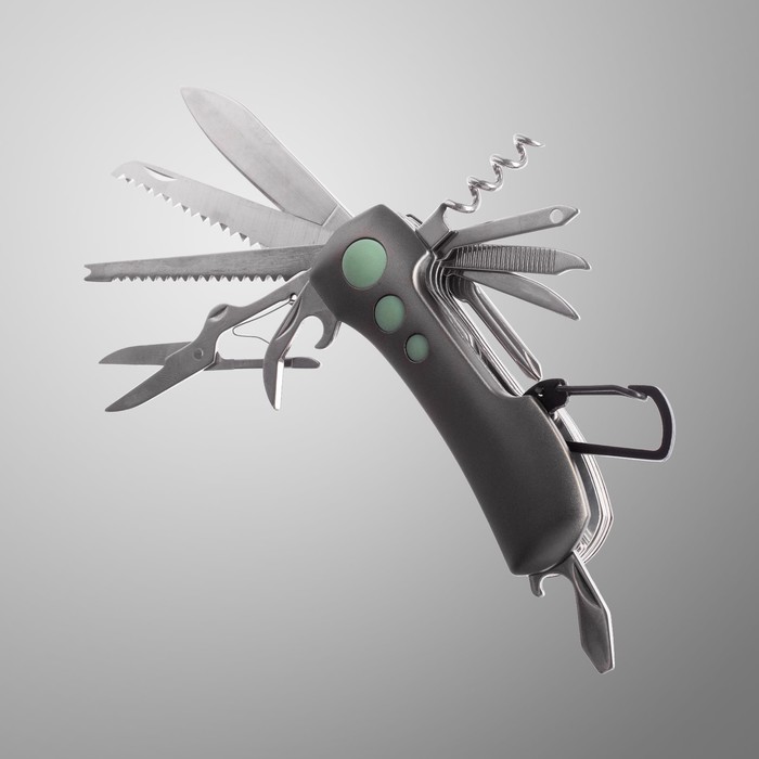 Нож швейцарский 12в1, 17см, клинок 73мм/1,5мм, черный