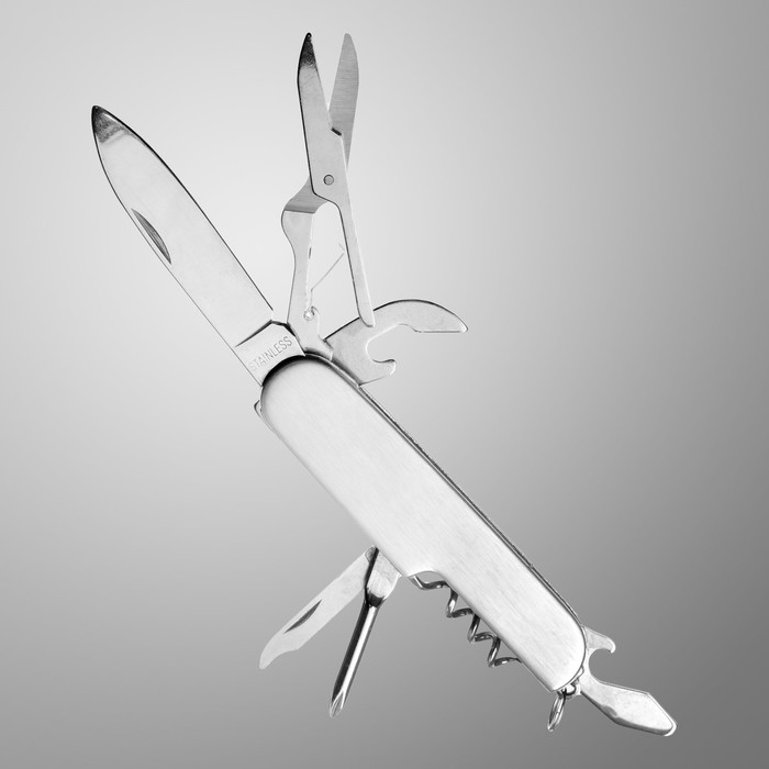 Нож швейцарский под гравировку 8в1 включает в себя: