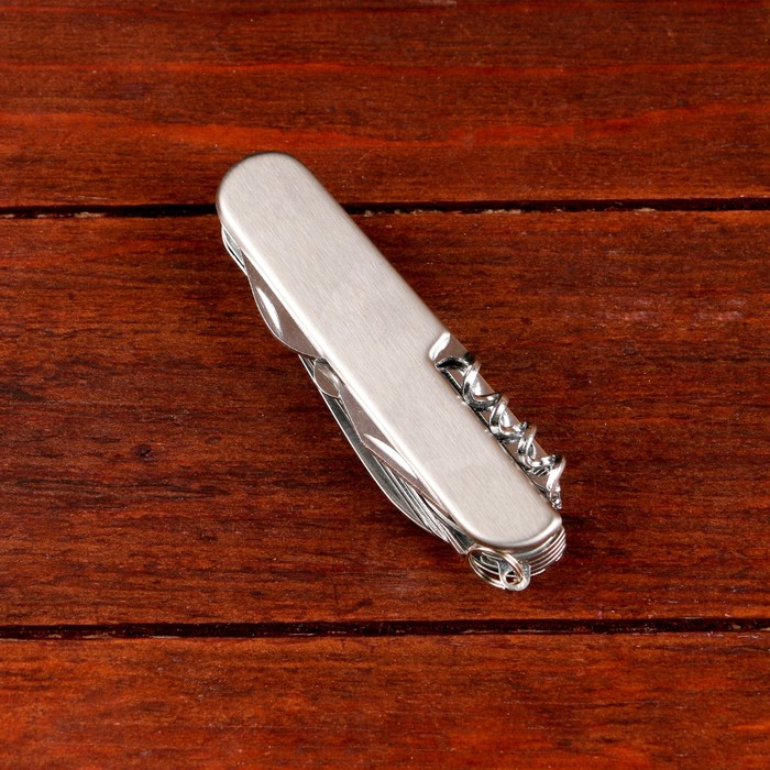 Нож швейцарский под гравировку 8в1 можно охарактеризовать двумя словами – удобный и функциональный. Такой перочинный нож станет для вас незаменимым помощником, например, дома, в походе или на пикнике. Потому что вы будете обладать арсеналом самых необходимых инструментов. С их помощью непростая ситуация разрешится в два счета.