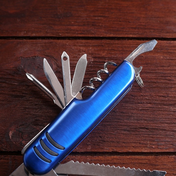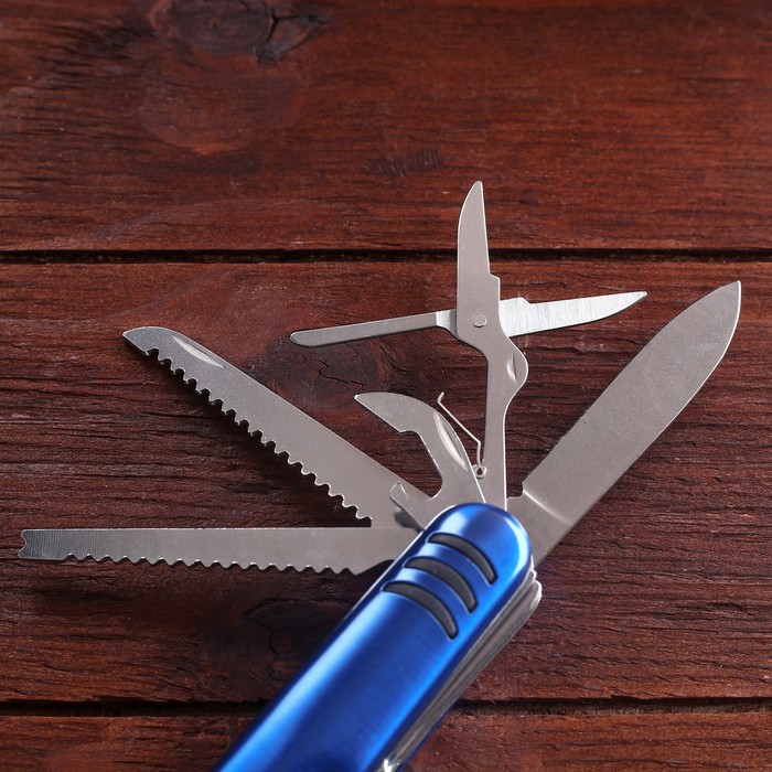 Нож швейцарский "Спасатель" 11в1, синий можно охарактеризовать двумя словами – удобный и функциональный. Такой перочинный нож станет для вас незаменимым помощником, например, дома, в походе или на пикнике. Потому что вы будете обладать арсеналом самых необходимых инструментов. С их помощью непростая ситуация разрешится в два счета.