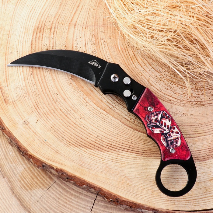 Нож складной "Красный дракон" 15см, клинок 62мм/1мм, с карабином, микс