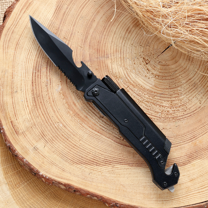 Нож складной полуавтоматический «Ёрш», клинок 7 см, черный