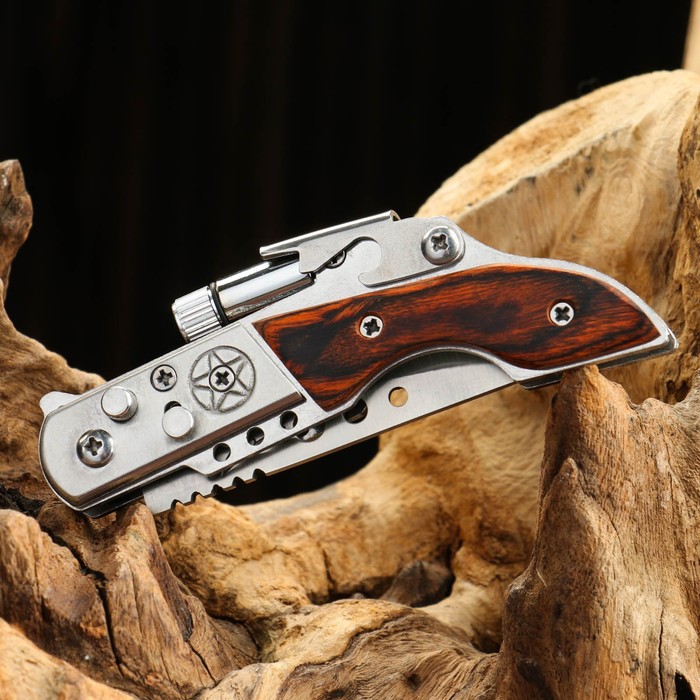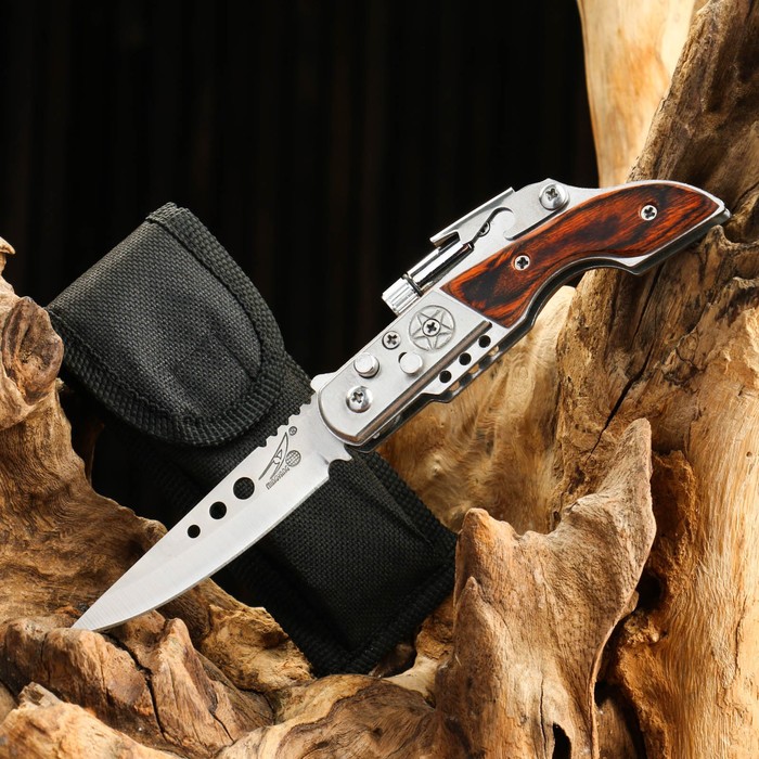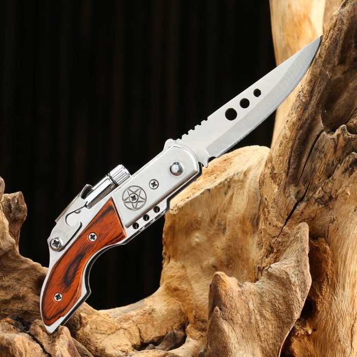 Поклонники активного отдыха на свежем воздухе не понаслышке знают, что надежный клинок - это один из главных походных атрибутов. Поэтому, нож складной "Ружье" 17,4см, клинок 75мм/1,3мм, с фонариком пользуется популярностью у наших клиентов.