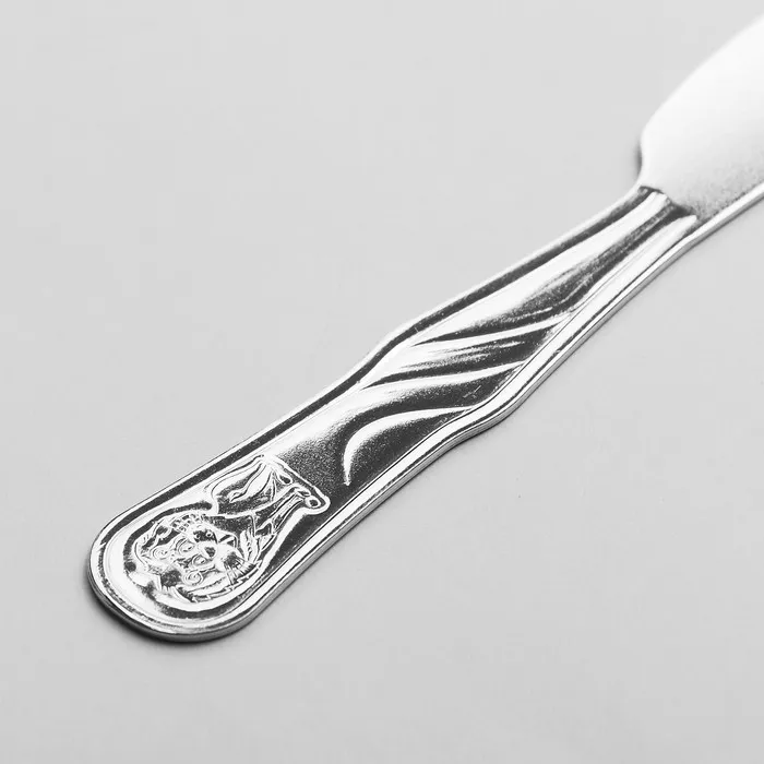 Нож из нержавеющей стали украшен изображением обаятельного героя и непременно понравится вашему крохе. Для безопасного использования края предмета затуплены.