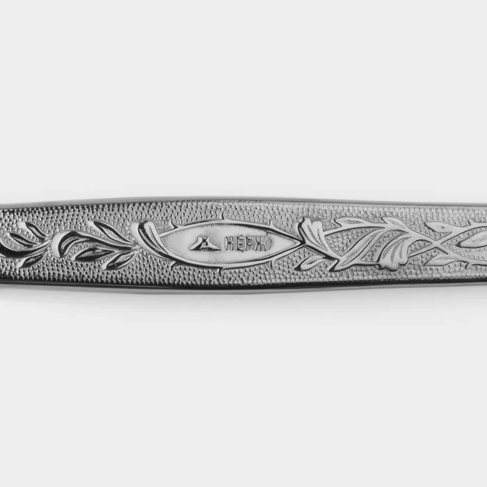 Столовые приборы «Уралочка» торговой марки Добросталь (Нытва) изготовлены из нержавеющей стали 18/0, толщиной 2 мм. Коллекция столовых приборов воплощает элегантную простоту. Каждый предмет серии обладает классической формой и размерами, украшен изысканным растительным орнаментом по лицевой стороне ручки.
