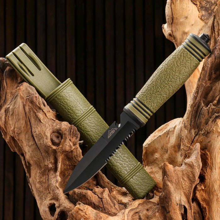 Нож тактический «Альфа», 23 см, клинок 110 мм/3 мм, со стеклобоем и стропорезом, зеленый