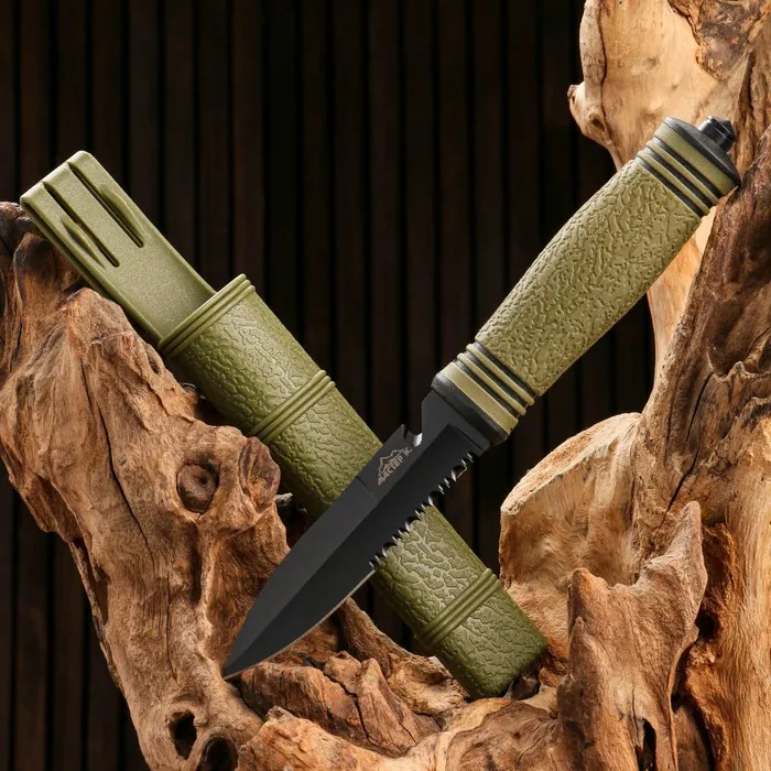 Нож тактический «Альфа», 23 см, клинок 110 мм/3 мм, со стеклобоем и стропорезом, зеленый — Характеристики