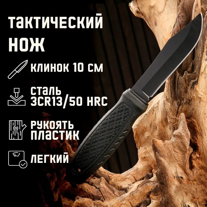 Нож тактический "Альфа" 23см, клинок 110мм/3мм, со стеклобоем, черный — Характеристики