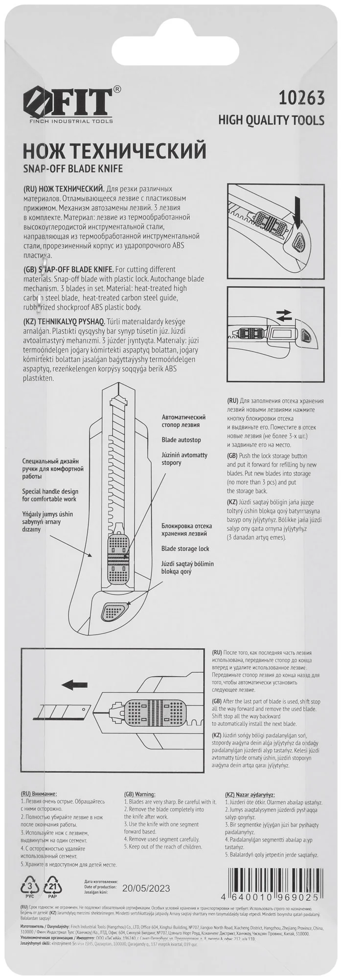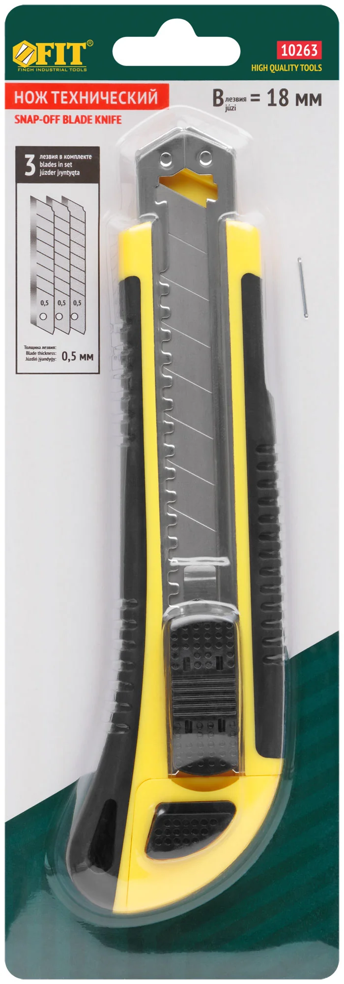 Выберите нож технический FIT 18 мм, артикул 10263, чтобы обеспечить себе надежный и долговечный инструмент для резки.