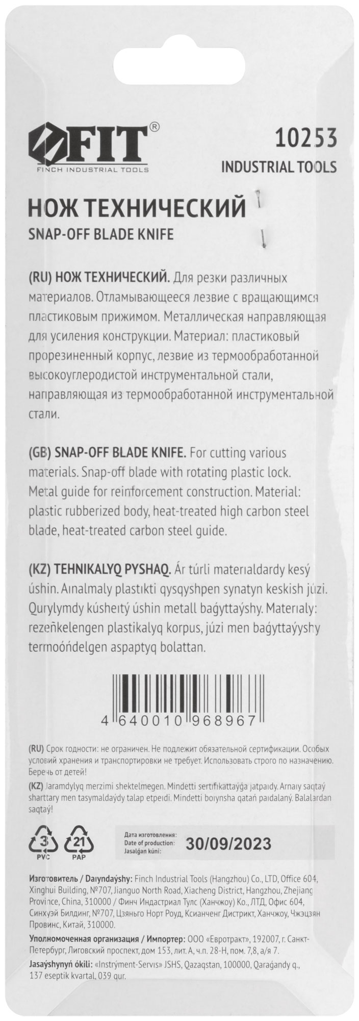 Выберите нож FIT с кодом 10253, чтобы получить надежный инструмент для профессиональных и бытовых задач.