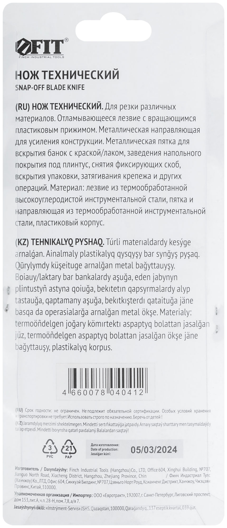 Работая на стройке или в мастерской, вы часто сталкиваетесь с необходимостью вскрытия упаковок, банок с краской или выполнения других точных разрезов. Усиленный технический нож FIT с лезвием 18 мм станет вашим незаменимым помощником в этих задачах.