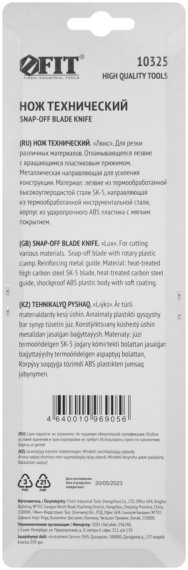 Выберите нож технический FIT, артикул 10325, для эффективной и комфортной работы над проектами.