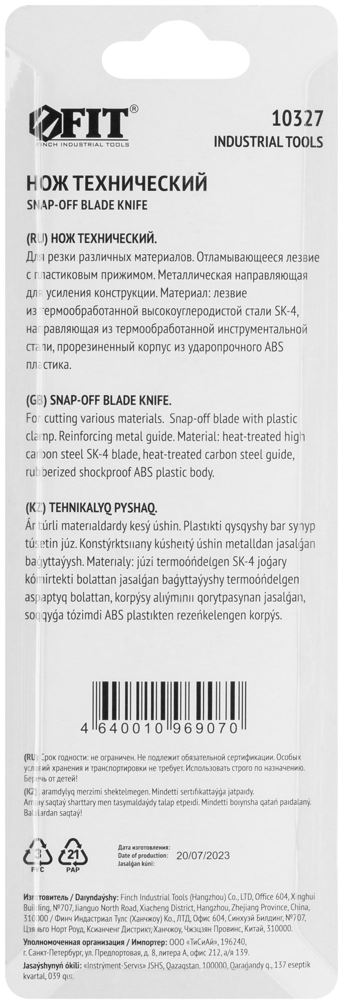 Выберите нож FIT 10327, чтобы обеспечить себе комфорт и надежность в работе с различными материалами.