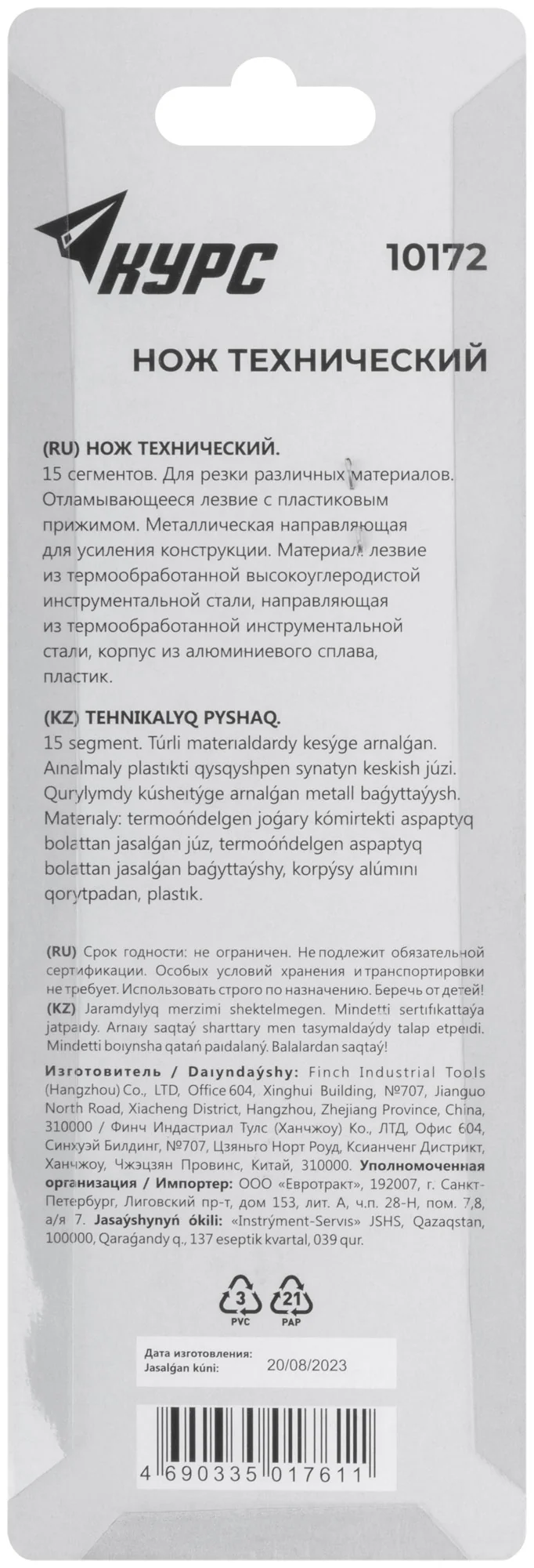 Выберите нож "Классик" от КУРС для эффективной и точной работы с различными материалами. Он станет надежным помощником в ваших профессиональных задачах.