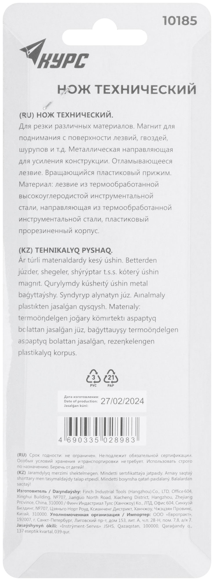 Этот технический нож идеально подходит для задач, связанных с резкой различных материалов в условиях строительной площадки. Благодаря 25 мм ширине лезвия и усиленной конструкции, он справится с любыми задачами, требующими точности и надежности.