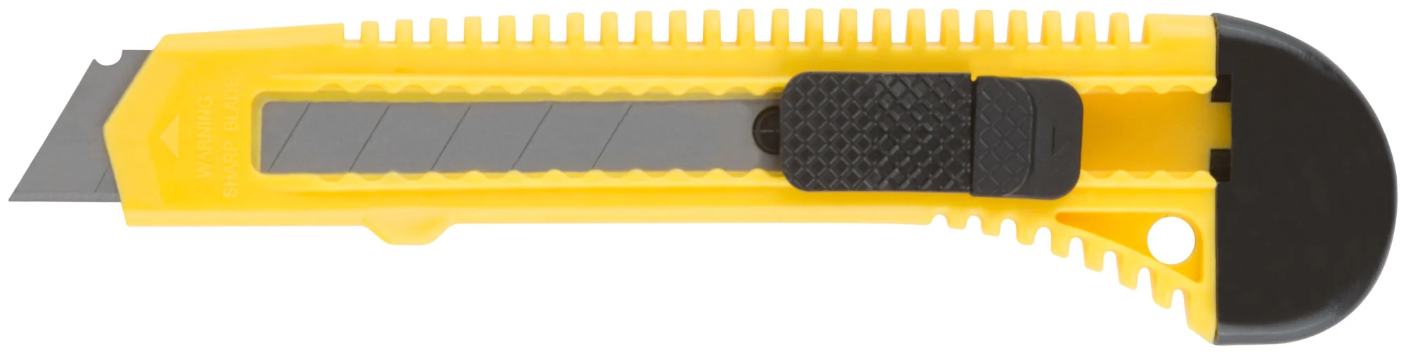 Корпус ножа выполнен из прочного пластика, что обеспечивает легкость и удобство в использовании. Сегментированное лезвие из инструментальной стали гарантирует долговечность и чистоту реза. Удобная система фиксации лезвия позволяет быстро менять сегменты, не тратя лишнего времени.