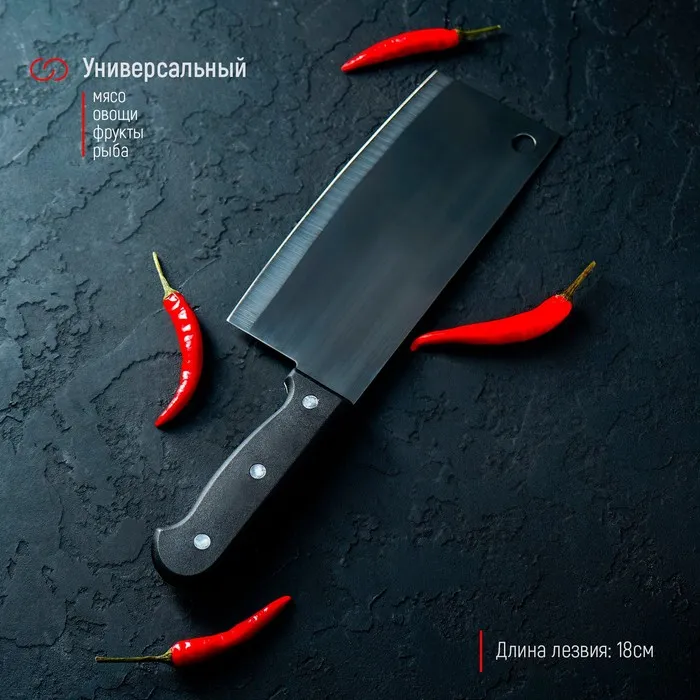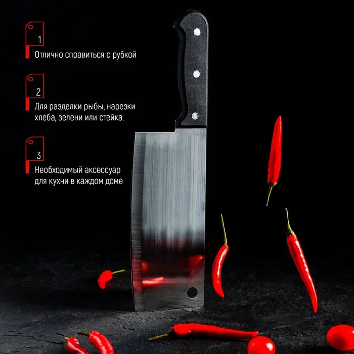Нож-топорик кухонный Доляна «Лидер», лезвие 18 см — Характеристики
