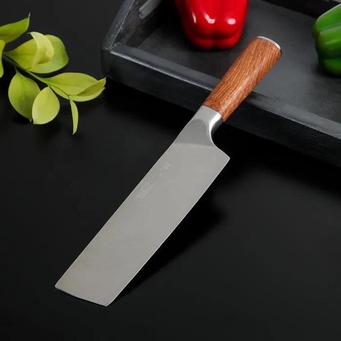 • Универсальный размер: нож имеет оптимальный размер, что позволяет использовать его для выполнения различных задач на кухне, от нарезки небольших ингредиентов до разделки крупных кусков мяса.