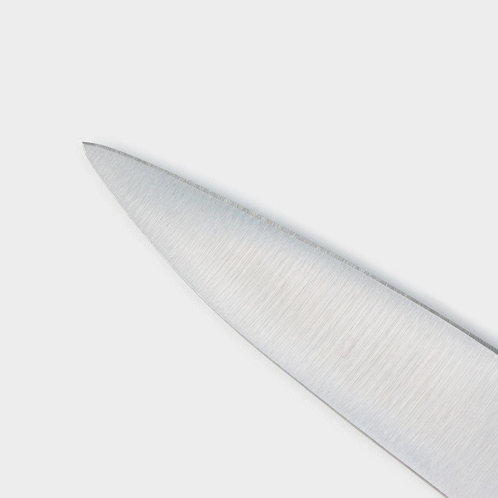 Высококачественный материал: клинок ножа изготовлен из прочного металла, который обеспечивает остроту лезвия и долгий срок службы изделия.Эргономичная ручка: ручка ножа изготовлена из нескользящего материала, который обеспечивает надежный захват и комфортное использование ножа даже при длительной работе.Универсальный размер: нож имеет оптимальный размер, что позволяет использовать его для выполнения различных задач на кухне, от нарезки небольших ингредиентов до разделки крупных кусков мяса.Острое лезвие: благодаря качественной заточке лезвия, нож легко справляется с нарезкой самых разных продуктов, сохраняя их текстуру и свежесть.Многофункциональность: нож универсальный может использоваться для нарезки, измельчения и разделки различных продуктов - от овощей и фруктов до мяса и рыбы.Легко ухаживать: нож легко моется и очищается от остатков продуктов, что позволяет поддерживать его в чистоте и порядке.