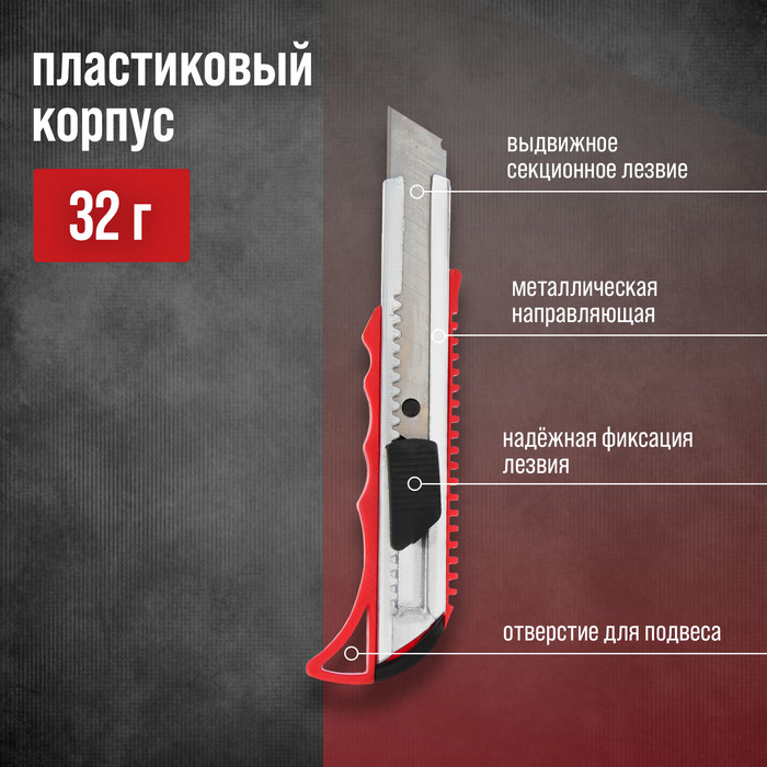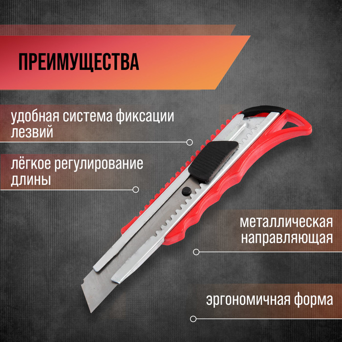Нож универсальный ЛОМ — отличный помощник как в строительстве и ремонте, так и в быту. Такой инструмент поможет быстро и ровно раскроить обои и напольные покрытия, вырезать различные узоры и многое другое. Эргономичная рукоятка удобно лежит в руке во время работы.