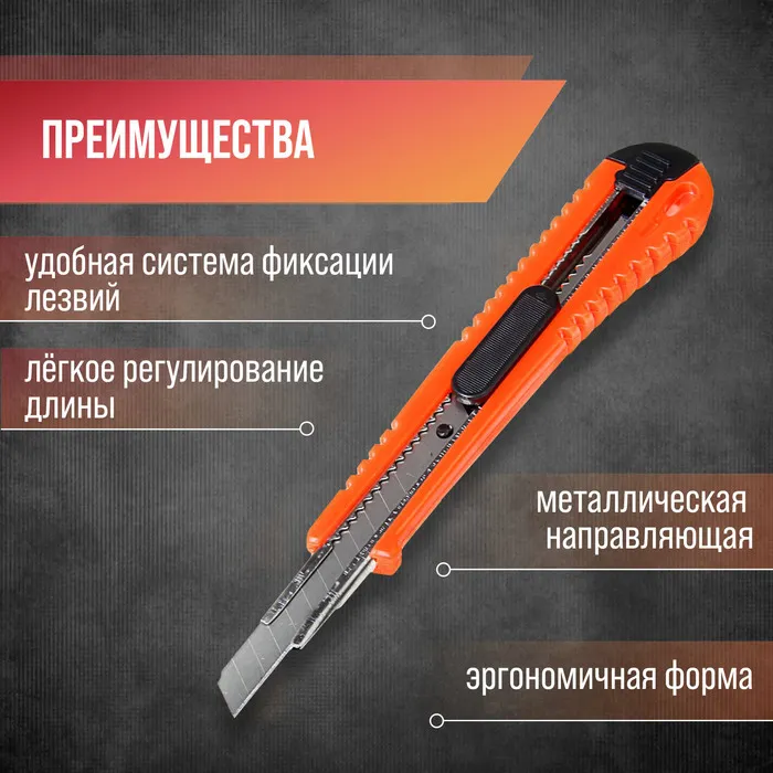Нож универсальный ЛОМ — отличный помощник как в строительстве и ремонте, так и в быту. Такой инструмент поможет быстро и ровно раскроить обои и напольные покрытия, вырезать различные узоры и многое другое. Эргономичная рукоятка удобно лежит в руке во время работы.