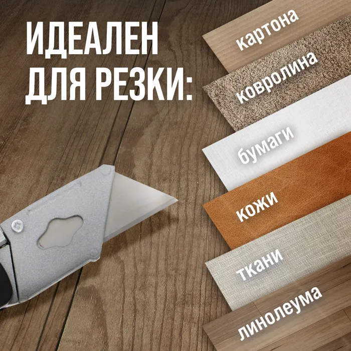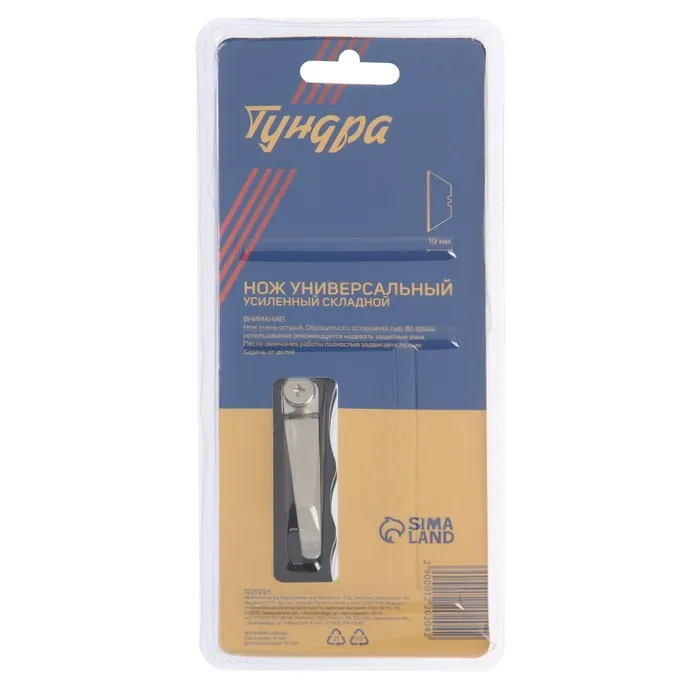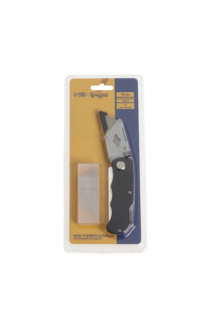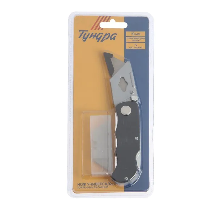 Нож универсальный складной ТУНДРА, металл. корпус, трапециевидное лезвие + 5 запасных, 19 мм — Характеристики