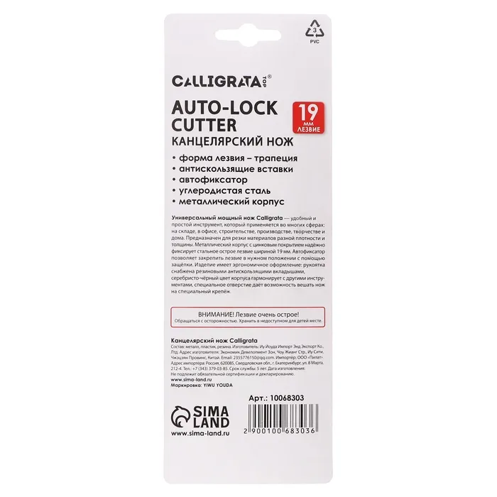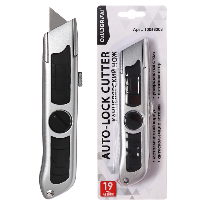 Нож универсальный трапециевидный 19 мм, фиксатор, корпус металл, Zinc-alloy, TOP — Характеристики