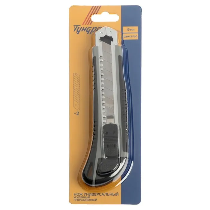 Нож универсальный ТУНДРА — отличный помощник как в строительстве и ремонте, так и в быту. Такой инструмент поможет быстро и ровно раскроить обои и напольные покрытия, вырезать различные узоры и многое другое. Эргономичная рукоятка удобно лежит в руке во время работы.
