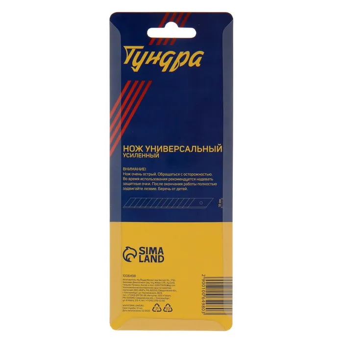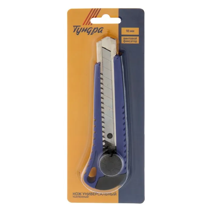 Нож универсальный ТУНДРА — отличный помощник как в строительстве и ремонте, так и в быту. Такой инструмент поможет быстро и ровно раскроить обои и напольные покрытия, вырезать различные узоры и многое другое. Эргономичная рукоятка удобно лежит в руке во время работы.
