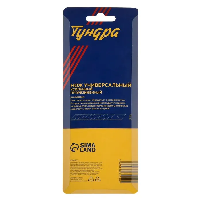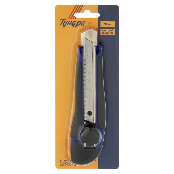 Нож универсальный ТУНДРА — отличный помощник как в строительстве и ремонте, так и в быту. Такой инструмент поможет быстро и ровно раскроить обои и напольные покрытия, вырезать различные узоры и многое другое. Эргономичная рукоятка удобно лежит в руке во время работы.