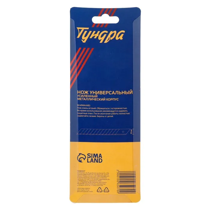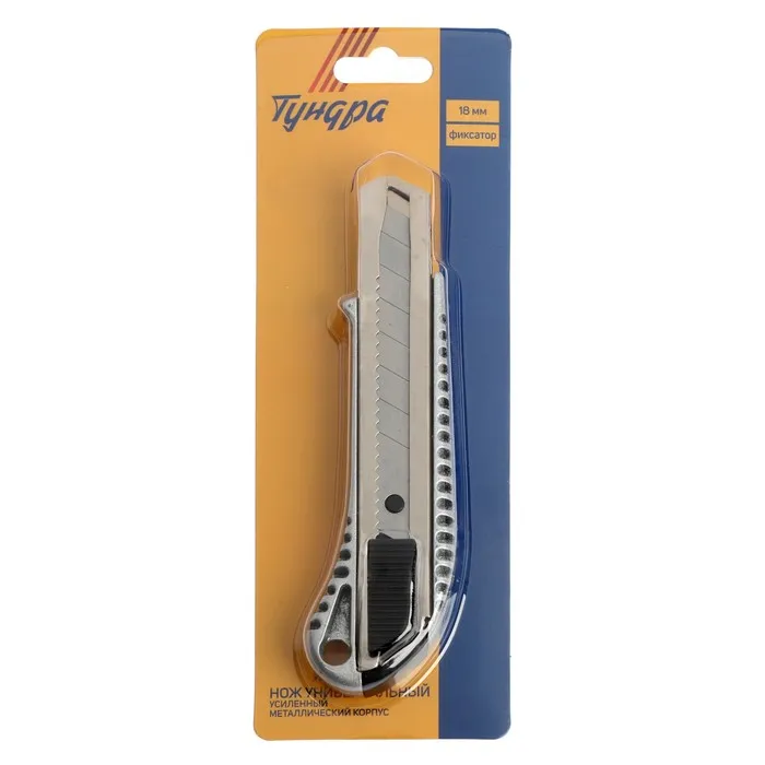 Нож универсальный ТУНДРА — отличный помощник как в строительстве и ремонте, так и в быту. Такой инструмент поможет быстро и ровно раскроить обои и напольные покрытия, вырезать различные узоры и многое другое. Эргономичная рукоятка удобно лежит в руке во время работы.