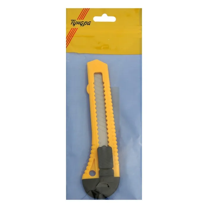 Нож универсальный ТУНДРА — отличный помощник как в строительстве и ремонте, так и в быту. Такой инструмент поможет быстро и ровно раскроить обои и напольные покрытия, вырезать различные узоры и многое другое. Эргономичная рукоятка удобно лежит в руке во время работы.