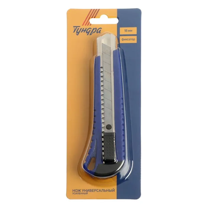 Нож универсальный ТУНДРА — отличный помощник как в строительстве и ремонте, так и в быту. Такой инструмент поможет быстро и ровно раскроить обои и напольные покрытия, вырезать различные узоры и многое другое. Эргономичная рукоятка удобно лежит в руке во время работы.