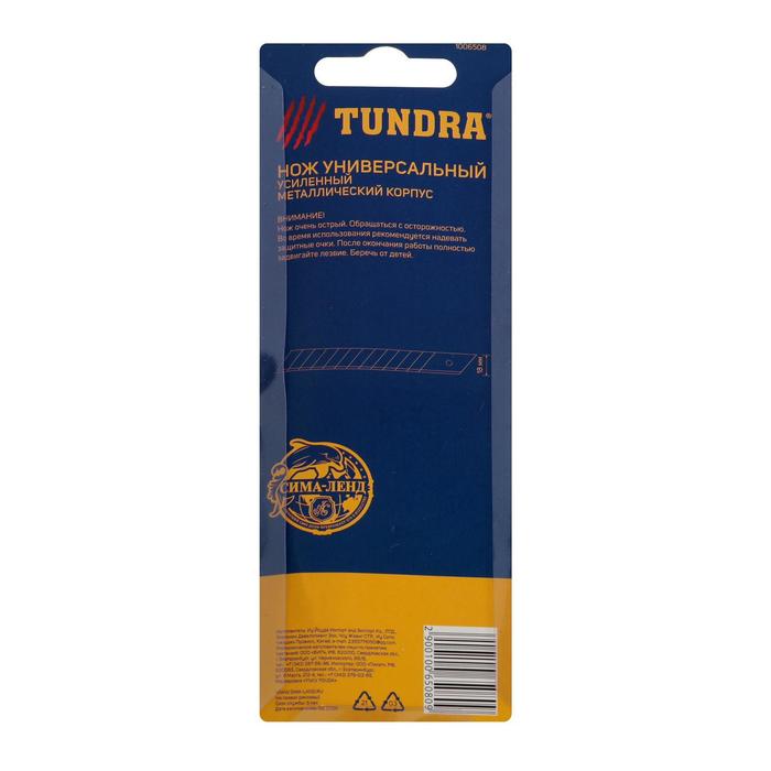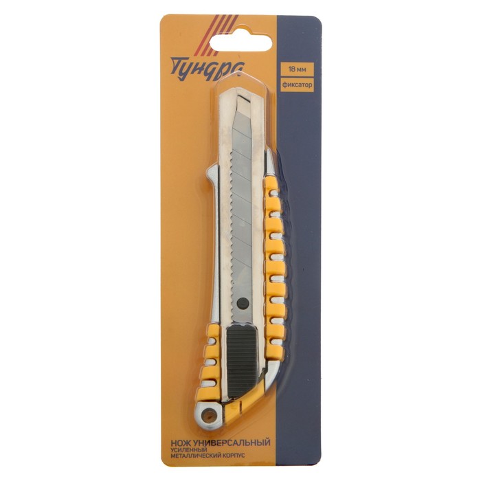 Нож универсальный ТУНДРА, прорезиненный металлический корпус, 18 мм