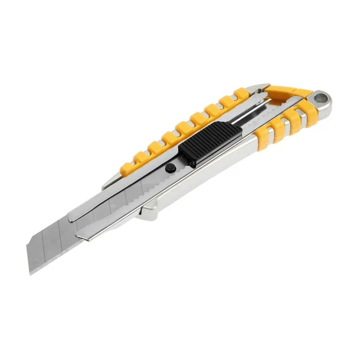 Данная модель имеет прочный корпус. Лезвие полностью задвигается внутрь, что гарантирует безопасное хранение. Если режущая поверхность затупилась, вы легко можете его поменять, отломив старый кончик по специально расчерченной линии с помощью съёмной задней части.