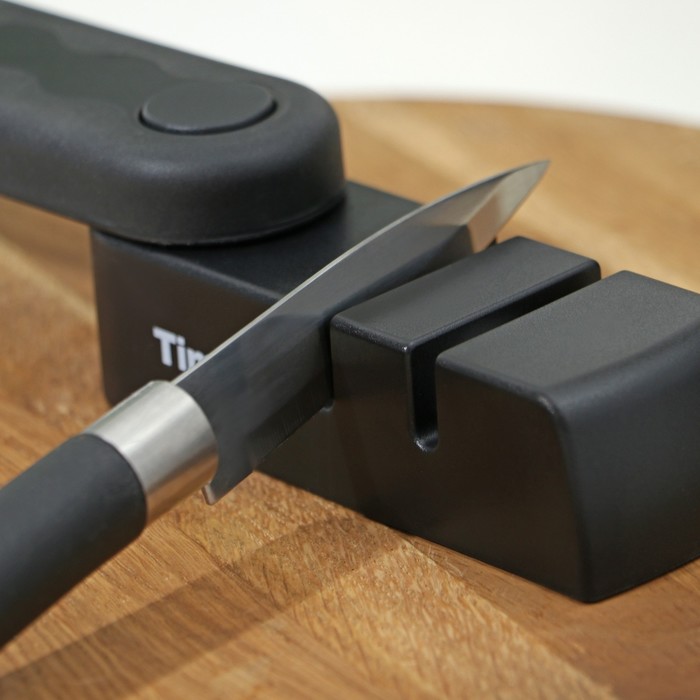С ножеточкой TimA вы сможете без особых хлопот заточить все ваши ножи. Вставьте лезвие ножа в прорезь под углом 90° к точилке, надавите на нож с небольшим усилием и протяните лезвие к себе через резец. Для этого не требуется особых усилий, и с ним могут справиться как девушки, так и парни, как профессиональные домохозяйки, так и начинающие повара.