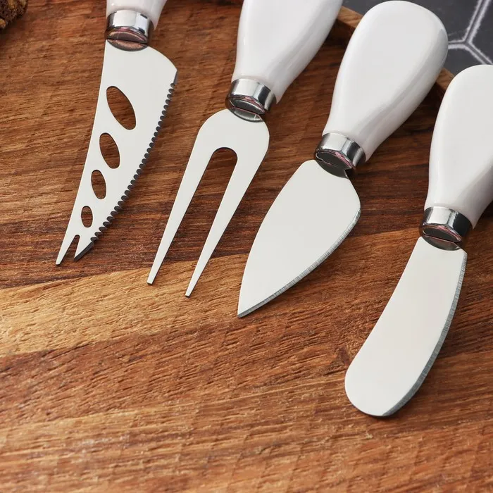 Ножи для сыра Magistro Celt, 4 предмета: нож 3 шт., вилка для сыра 1 шт., керамическая ручка, белые — Характеристики
