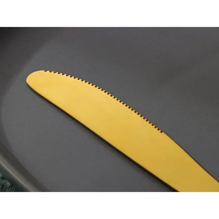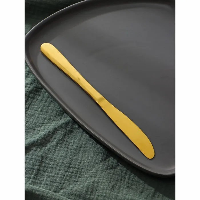 Набор столовых ножей Доляна «Голд» изготовлен из качественной коррозионностойкой стали. Приборы имеют современный минималистичный дизайн с четкими контурами и отсутствием декоративных элементов, поэтому их можно использовать для сервировки практически в любом стиле. Имеют удобные ручки, поэтому ими комфортно пользоваться.