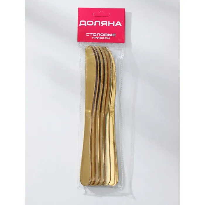 Ножи столовые Доляна «Голд», длина 22 см, набор 6 шт., нержавеющая сталь, золотистые — Характеристики