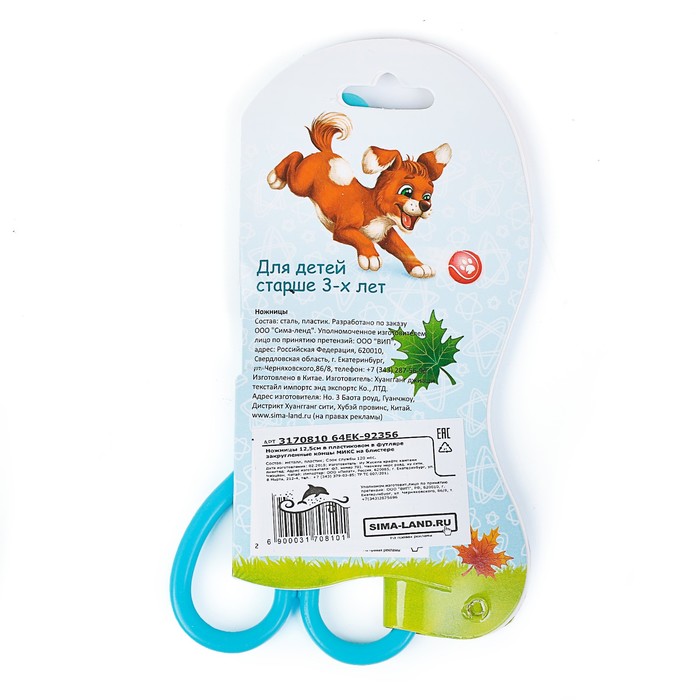 Ножницы 12.5 см, в пластиковом в футляре, закруглённые концы, корпус МИКС — Характеристики