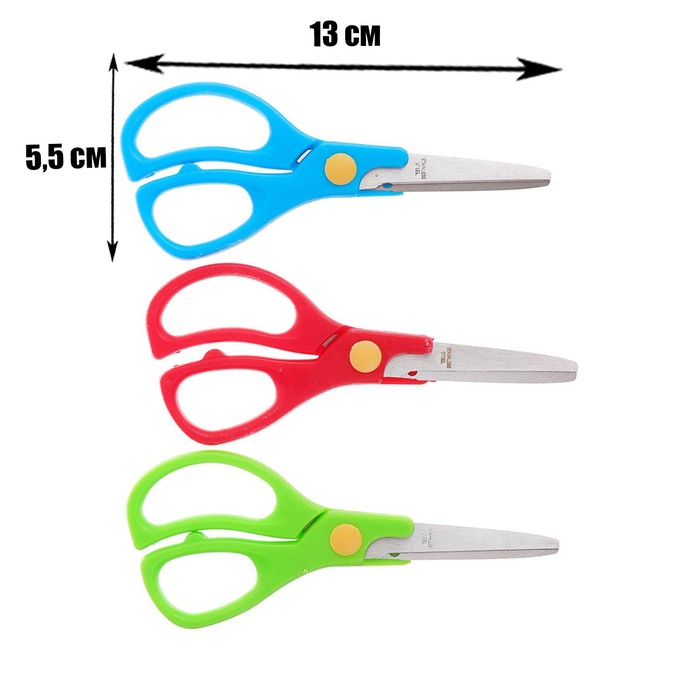 Ножницы 13 см, пластиковые ручки, закругленные концы, блистер, в картонной коробке, корпус МИКС — Характеристики