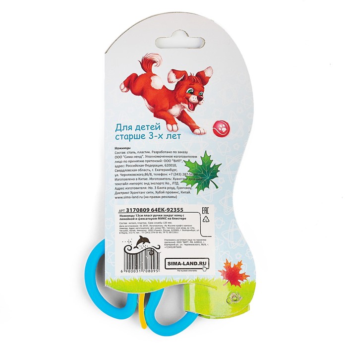 Ножницы 13 см, пластиковые ручки, закруглённые концы, фиксатор, блистер, корпус МИКС — Характеристики
