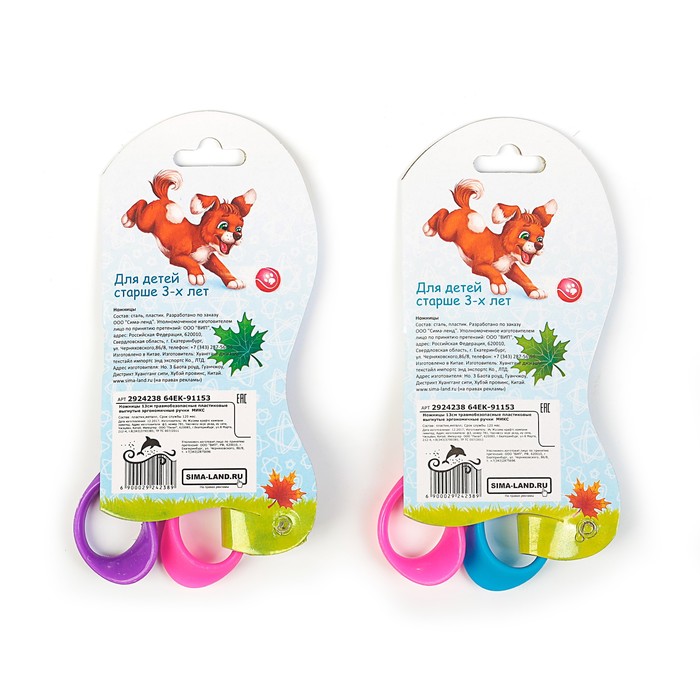 Ножницы 13 см, травмобезопасные, пластиковые, выгнутые эргономичные ручки, МИКС — Характеристики